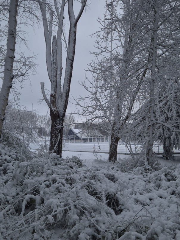 Helaas is er op Sportpark West in dit winterse tafreel voorlopig geen plaats voor voetbal.