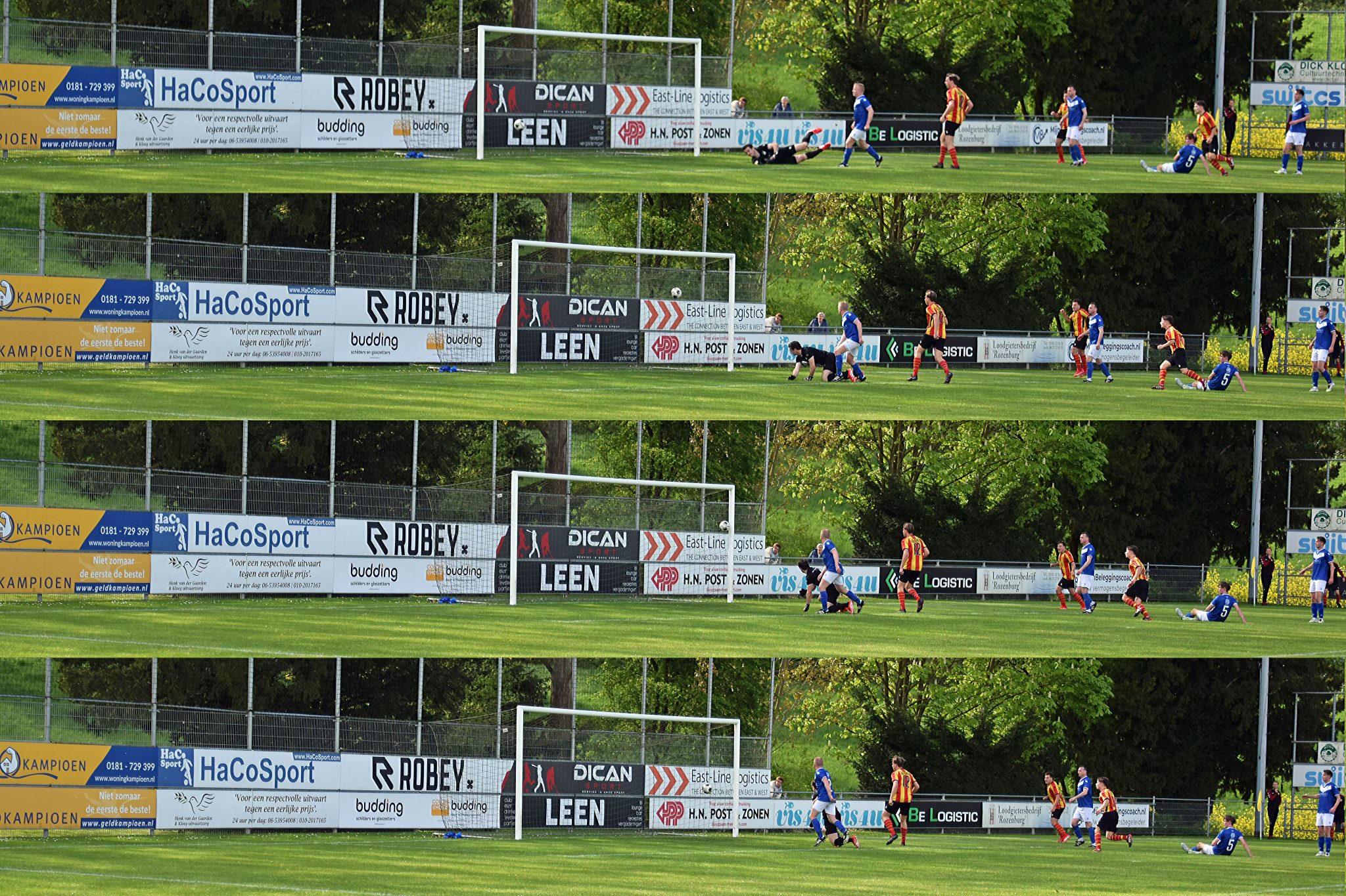 Na de pauze verliet Rozenburg vaker de verdedigende stellingen en toonde meer durf. Schoot Sam Jongejan eerst nog een vrije schop over, de tweede keer dat hij mocht aanleggen hoorde je het tikje van de handschoen van DBGC doelman Roy Nieuwland die daarmee net voldoende de 1-0 voorkwam. Rozenburg viel gecontroleerd aan en vergat nu eens niet de verdedigende taken. Meestal wordt het voor Rozenburg verdedigend in de laatste tien minuten nog hectisch.