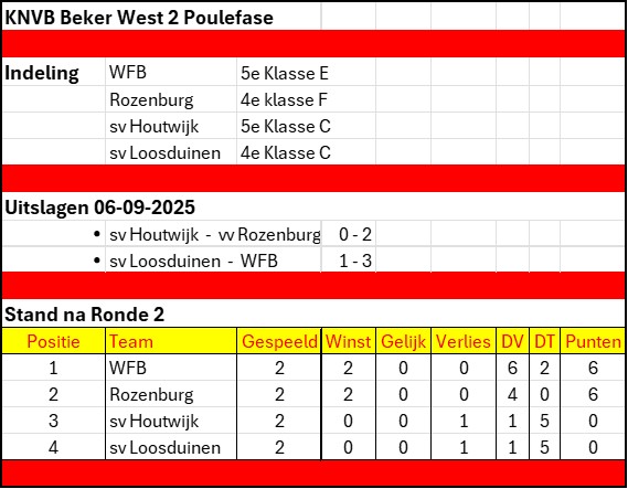 Stand KNVB Beker na 2 poulewedstrijden (per 6-9-2025)