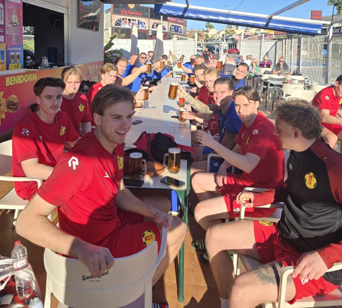 In de badplaats werd het jaarlijkse trainingskamp in een heerlijk zonnig intermezzo intensief afgewerkt met (Spaanse) vrienden maken, trainingen, potje padel, een wedstrijd, vloeibaar eten, maaltijden en veel drank & speis. De aanpak is serieus, maar er is ook gemoedelijke en verdiende ontspanning.